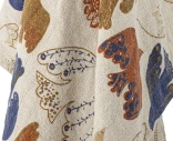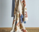 Bloomingvillen kuviollinen torkkupeitto tuo boheemia lämpöä ja leikkisyyttä kodin sisustukseen. Pellavapintaiselle pohjalle on kudottu kauniita, hieman käsin piirretyn oloisia lintukuvioita maanläheisissä ja luonnollisissa sävyissä. Siniset tupsut nurkissa viimeistelevät ilmeen rennon tyylikkäästi. Peitto sopii yhtä hyvin sohvalle, nojatuoliin kuin sängyn päälle tuomaan väriä ja kerroksellisuutta sisustukseen.