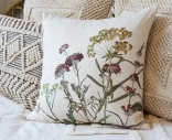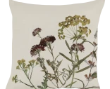 Hempeän herkkä Chic Antiquen tyynynpäällinen tuo kotiin luonnonläheistä romantiikkaa. Vaalealla pohjalla kukkivat hienostuneet, vintage-henkiset kasvikuvioinnit viininpunaisen, vihreän ja okrankeltaisen sävyissä. Värit ovat hyvin maanläheiset. Kangas on pehmeä ja sileä, siinä on aavistuksen kiiltävä pinta. Tämä kukallinen tyynynpäällinen on ihana yksityiskohta boheemiin, maalaisromanttiseen tai skandinaaviseen sisustukseen. Se sopii kauniisti niin yksin kuin kerroksittain neutraalien sävyjen tai luonnonmateriaalien kanssa. Helppo vetoketjukiinnitys.