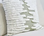 Classic Collectionin tyynynpäällinen River. Taustakangas on vihreää puuvillaa, jossa on hieman pellavaan viittaava pinta. Sama kangas myös tyynynpäällisen takapuolella. Sivuissa on paksut tuftatut kuviot. Ne ovat niin pehmeät! Vetoketju.