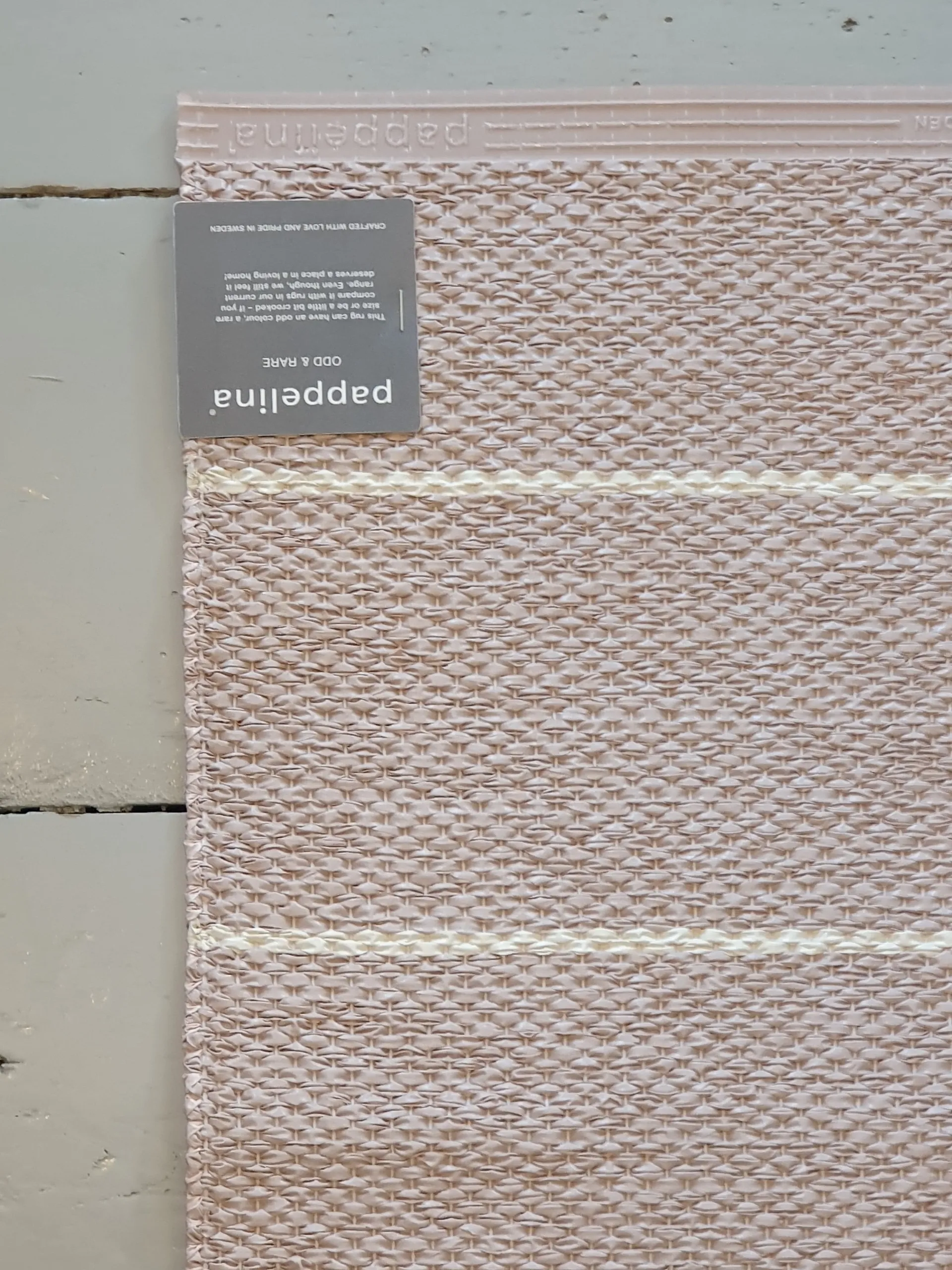 Tämä matto on osa Pappelinan Odd & Rare -sarjaa. Odd & Rare -sarjan matoissa voi olla erikoisia väriyhdistelmiä, erikokoisia kokoja tai ne voivat olla 2-laatuisia, esimerkiksi reunat hieman vinoja tai vastaavia virheitä. Mikäli matossa on jokin virhe, se kerrotaan kuvauksessa ja siitä on otettu kuva. Otan mielelläni sinulle lisää kuvia, laitathan viestiä [email protected].