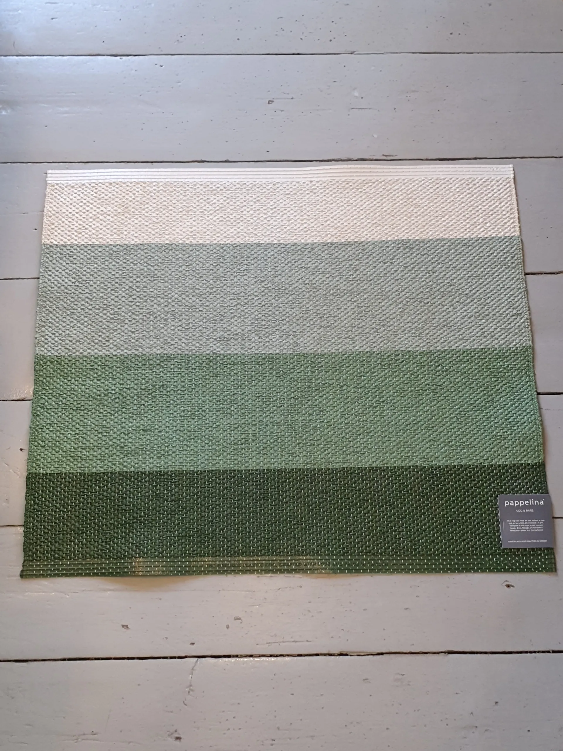 Tämä matto on osa Pappelinan Odd & Rare -sarjaa. Odd & Rare -sarjan matoissa voi olla erikoisia väriyhdistelmiä, erikokoisia kokoja tai ne voivat olla 2-laatuisia, esimerkiksi reunat hieman vinoja tai vastaavia virheitä. Mikäli matossa on jokin virhe, se kerrotaan kuvauksessa ja siitä on otettu kuva. Otan mielelläni sinulle lisää kuvia, laitathan viestiä [email protected].