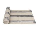 Storefactory Karlevi -tekstiiisarjan kaitaliinassa on ajaton raitakuos tuo kattaukseen raikkautta. Hillityt tummansiniset raidat luonnonvalkoisella pohjalla luovat klassista ilmettä. Kaitaliina on valmistettu 80 % kierrätetystä puuvillasta ja 20 % kierrätetystä polyesteristä. Koko: 35 x 120 cm sopii hyvin pieneen ruokapöytään, sohvapöydälle tai tasolle.