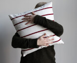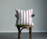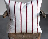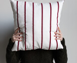 Storefactoryn ajaton raidallinen tyynynpäällinen, joka luo kodikkaan tunnelman keittiön sohvalle tai olohuoneeseen. Puhtaan valkoinen väri, jota rytmittää ohuet punaiset raidat.