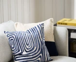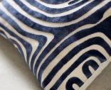 Molly-tyynynpäällinen tummansinisessä sävyssä tuo kotiin modernia syvyyttä ja näyttävyyttä. Graafinen, labyrinttimäinen kuviointi herää eloon samettimaisella raidalla, joka kiiltää kauniisti valoa vasten. Tummansininen väri luo kontrastia ja toimii katseenvangitsijana vaaleassa sisustuksessa. Tyylikäs valinta moderniin tai merihenkiseen sisustukseen.