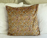 Vanilla Flyn upea samettityynynpäällinen. Vanilla Flyn sametti on todella laadukasta, pehmeää ja sileää. Tässä kuosissa on kauniit vaaleanpunaiset ja valkoiset kukat sekä hennon vihreitä lehtiä. Pohjaväri on lämmin toffeen ruskea. Upea kuvio. Alareunasssa vetoketju. Upea tyynynpäällinen antaa arkeesi ylellistä tuntua.