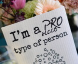 Hauskan tiskirätin voit antaa lahjaksi ystävälle, joka pitää proseccosta! Tiskirätissä on kiva teksti "I'm a PROsecco type of person". Tiskirätin voit pestä koneessa 60 asteessa ja kun sen käyttöikä tulee täyteen, voit heittää sen kompostiin.