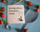 Erika Tubbinin hauskoissa tiskirätteissä on kivat viestit ja ne sopivatkin erinomaisesti lahjaksi. Tai osta itsellesi, niin saat iloa keittiöönsi! Tässä kesäisessä tiskirätissä on ruotsinkielinen teksti "jordgubbar solsken rosé". Tiskirätin voit pestä koneessa 60 asteessa ja kun sen käyttöikä tulee täyteen, voit heittää sen kompostiin.