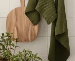 Ib Laursenin kauniisti neulottu tiskirätti puuvillaa. Ripustuslenkki. Värinä tummanvihreä, joka sopii hyvin käytettäväksi ympäri vuoden. Samasta väristä löydät myös patalapun.