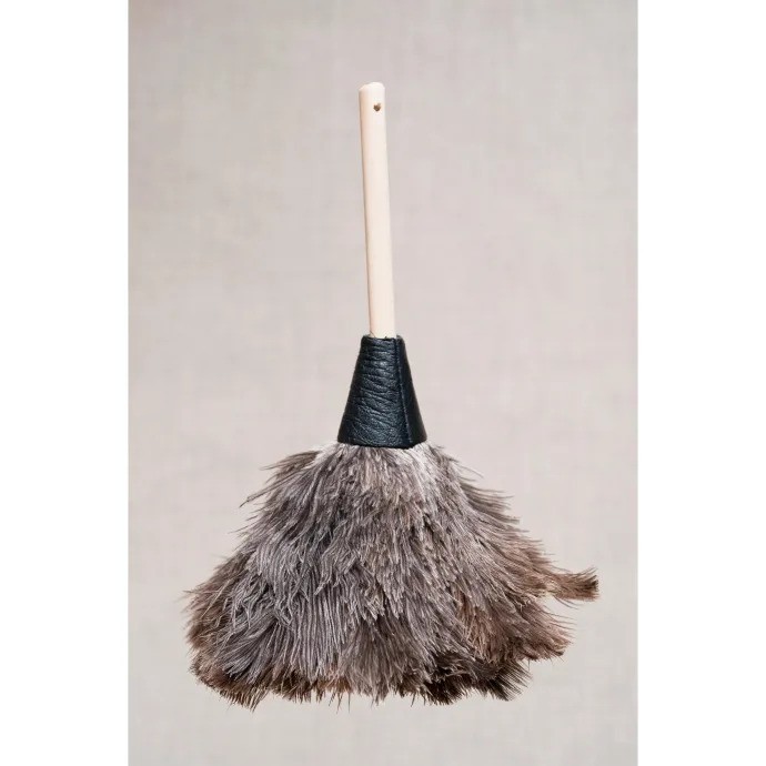 Sahlinin strutsinsulkainen pölyhuiska tekee pölynpyyhkimisestä kevyttä ja tehokasta. Luonnollisista strutsinsulista valmistettu huiska vetää pölyn puoleensa staattisesti, eikä vain levitä sitä ilmaan. Lyhyt puuvarsi tekee käytöstä kätevää erityisesti pienissä tiloissa ja herkissä kohteissa kuten koriste-esineiden, valaisimien tai hyllyjen puhdistuksessa. Tyylikäs ja kestävä valinta, joka kestää vuosien käyttöä.