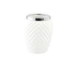 Elegantti Lene Bjerren Milda -sarjan hammasharjamuki. Muki on valkoista keramiikkaa. Sen pinnassa on kaunis uritus. Tyylikkään yksityiskohdan mukille antaa hopeareunus.