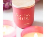 Ihana äitienpäivälahja! Tuoksukynttilä, jolla on kauniin punainen lasipurkki puukannella. Tuoksuna pehmeä ja lämmin santelipuu. Purkin kyljessä kullan värinen teksti "Special Mum". Kynttilän koko on 8 x 7cm.