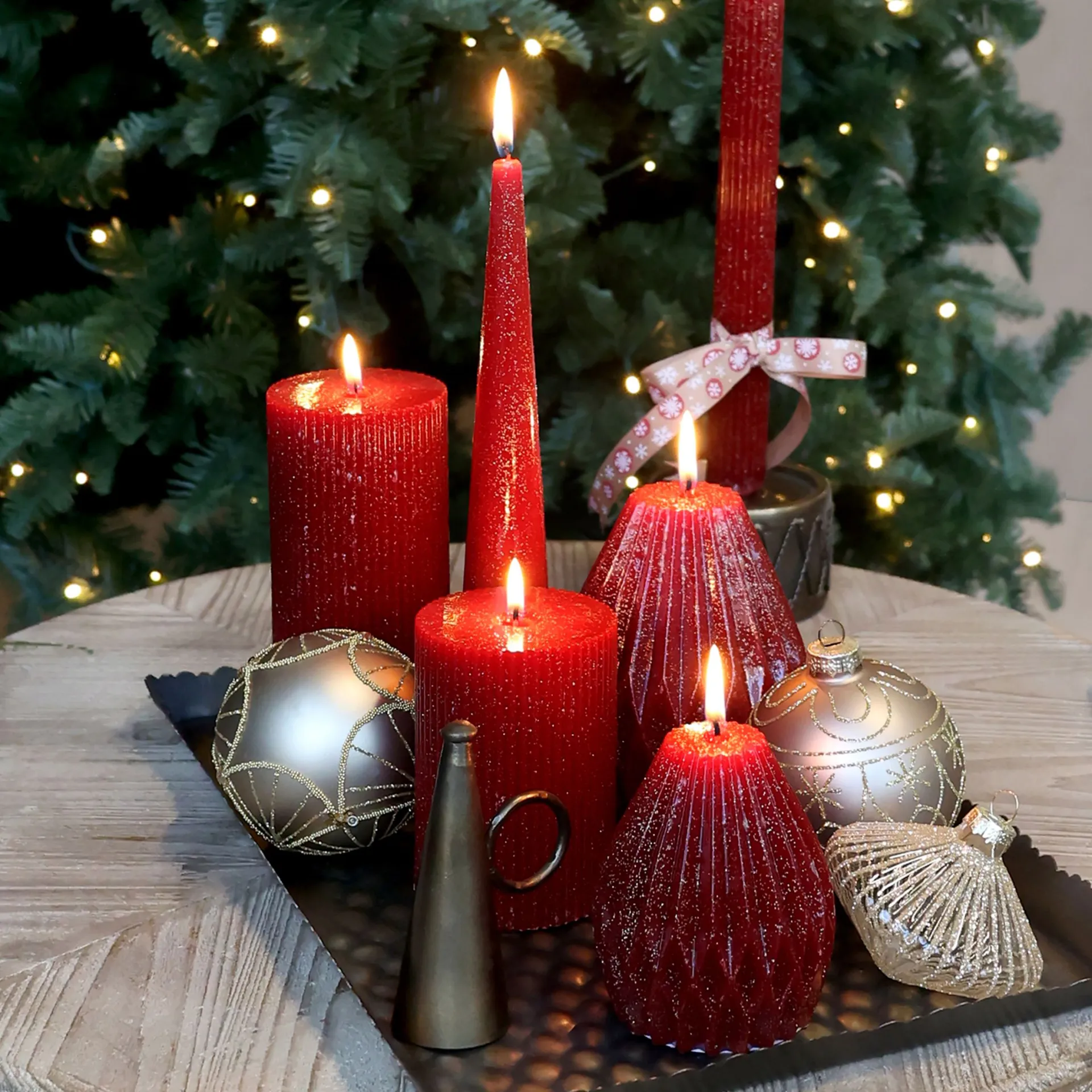 Chic Antique kynttilä tummanpunainen glitter 9 cm