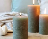Chic Antiquen ihana oliivinvihreä pöytäkynttilä parafiinia, paloaika 40h.