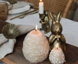 Tämä kauniin munanmuotoinen kynttilä on kaunis kuin koru. Chic Antiquen vaalea kynttilä hurmaa herkällä, valkoisella pitsimäisellä kukkakuvioinnilla, joka luo pinnalle elegantin ja pehmeän ilmeen. Kynttilä sopii täydellisesti kattauksen katseenvangitsijaksi tai osaksi romanttista asetelmaa.