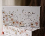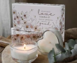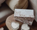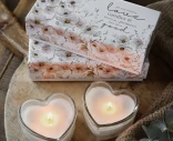 Majas Cottagen ihana tuoksukynttilä lahjarasiassa! Tuoksukynttilä on valmistettu luonnollisesta soijavahasta. Kynttilälasi ion sydämen muotoinen, joten se sopii täydellisesti romanttisen ja tyylikkään tunnelman luomiseen. Tuoksu on saanut inspiraationsa kuplivasta lasillisesta proseccoa. Tuoksu on raikas, kuohuva ja kevyesti hedelmäinen. Sen hienovarainen makeus tasapainottaa raikkaita sitrushedelmien sävyjä. Nämä kaksi kynttilää toimitetaan kauniissa lahjapakkauksessa, jossa teksti: All you need is Love, Candles & Prosecco then life is good.