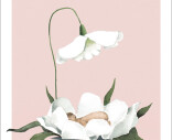 Suloisen pehmeä kaksiosainen onnittelukortti kastetilaisuuteen. Vaaleanpunaisella taustalla kukkien syleilyyn kietoutunut vauva ja kukka, joka kumartuu suojelemaan. Täydellinen valinta pienen tytön kastepäivään. Sisältä tekstitön, mukana kirjekuori. Suunnittelija Henna Adel. Koko 10 x 15 cm.
