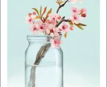 Kotimainen 1-osainen postikortti laadukasta kartonkia. Kuvassa kirsikkapuun kukkiva oksa maljakossa, vaaleanvihreä tausta. Ei tekstiä. Koko 105 x 148 mm. Design: Henna Adel.