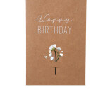 Räderin 2-osainen onnittelukortti. Kortissa teksti "Happy Birthday" ja valkoinen kuivattu oikea kukka. Ihana syntymäpäiväkortti. Tekstitön. Mukana tulee valkoinen kirjekuori.