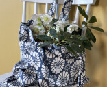 Vanilla Flyn upea samettikassi. Vanilla Flyn sametti on todella laadukasta, pehmeää ja sileää. Kassissa on puuvillavuori. Tässä kuosissa on tummansininen pohja ja retro kuvio valkoisista kukista. Ihana kuvio. Kantohihnan pituus 64cm. Käytännöllinen koko, tämä kassi sopii moneen tarkoitukseen. Upea kassi antaa arkeesi ylellistä tuntua.