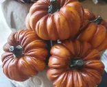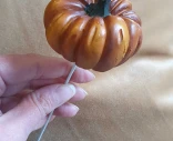 Koko: kurpitsan halkaisija 6 cm, metallitikku 9,5 cm