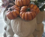 Pieni oranssi kurpitsakoriste valkoisella metallitikulla on monikäyttöinen lisä syksyisiin ja halloween-ajan somistuksiin. Koristeen voi helposti kiinnittää asetelmiin, kransseihin, ruukkuihin tai muihin syksyn koristeluihin. Kurpitsa tuo luonnonläheistä ja lämpimän oranssia sävyä sisustukseen ja on kaunis yksityiskohta niin yksittäin kuin useamman kappaleen ryhmässä.
