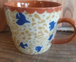 Bloomingvillen juhlavuoden Anniversary-muki hurmaa lämminhenkisellä värityksellään ja nostalgisella kuvioinnillaan. Valkoisella pohjalla lentävät siniset, ruskeat ja oranssit linnut luovat lämpimän tunnelman. Mukin sisäpinta sekä korva ovat maanläheisen terrakotan sävyä. Sopii täydellisesti aamukahville tai lahjaksi designin ystävälle. Kaunis sellaisenaan myös keittiön avohyllyllä tai kattausta koristamassa.