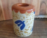 Bloomingvillen 25-vuotisjuhlavuoden Anniversary Collection -malliston kaunis kynttilänjalka on saanut koristeekseen eloisia lintukuvioita sinisen, oranssin ja ruskeam sävyissä. Kynttilänjalka on valmistettu lasitetusta keramiikasta. Sen yläreunassa on tyylikäs sininen reunus. Tämä iloisen ilmeen tuova yksityiskohta sopii kauniisti kattaukseen tai hyllylle muiden koriste-esineiden rinnalle.