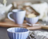Bloomingvillein kaunis Latina-sarja hurmaa heleän sinisellä lasitteellaan ja elegantilla uurrekuvioinnillaan. Astiat ovat keraamisia. Jokainen kappale on uniikki pienen sävyvaihtelun ja käsin viimeistellyn pinnan ansiosta. Sarjan muotokieli on pehmeä ja viehättävä. Se on siis täydellinen yhdistelmä arjen käyttöastioita ja juhlapöydän kaunistusta. Latina-sarja tuo ripauksen rentoa ylellisyyttä kattaukseen. Se sopii erinomaisesti skandinaaviseen kotiin, jossa arvostetaan yksinkertaisia, kauniita muotoja ja luonnonläheistä värimaailmaa.