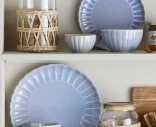 Bloomingvillein kaunis Latina-sarja hurmaa heleän sinisellä lasitteellaan ja elegantilla uurrekuvioinnillaan. Astiat ovat keraamisia. Jokainen kappale on uniikki pienen sävyvaihtelun ja käsin viimeistellyn pinnan ansiosta. Sarjan muotokieli on pehmeä ja viehättävä. Se on siis täydellinen yhdistelmä arjen käyttöastioita ja juhlapöydän kaunistusta. Latina-sarja tuo ripauksen rentoa ylellisyyttä kattaukseen. Se sopii erinomaisesti skandinaaviseen kotiin, jossa arvostetaan yksinkertaisia, kauniita muotoja ja luonnonläheistä värimaailmaa.