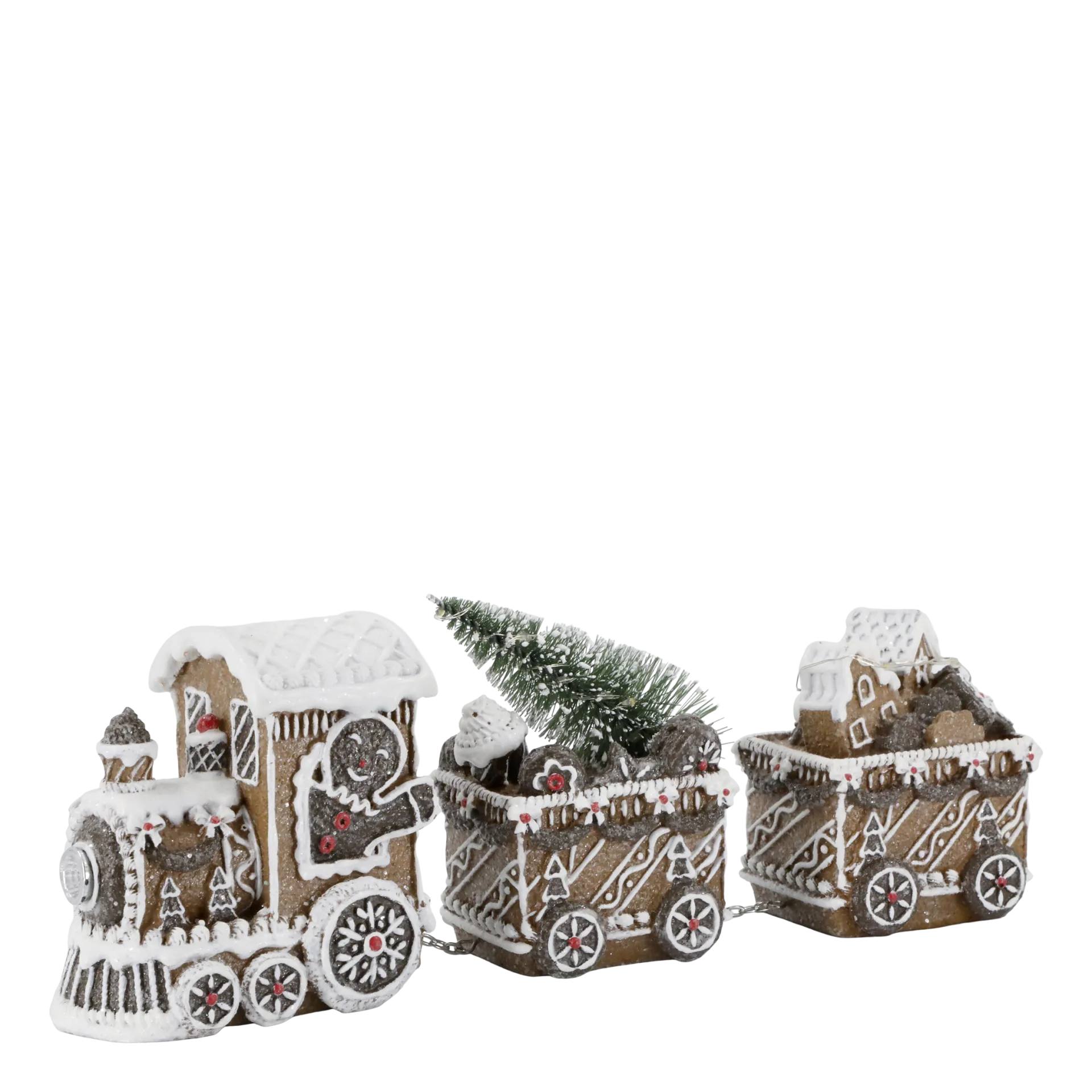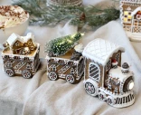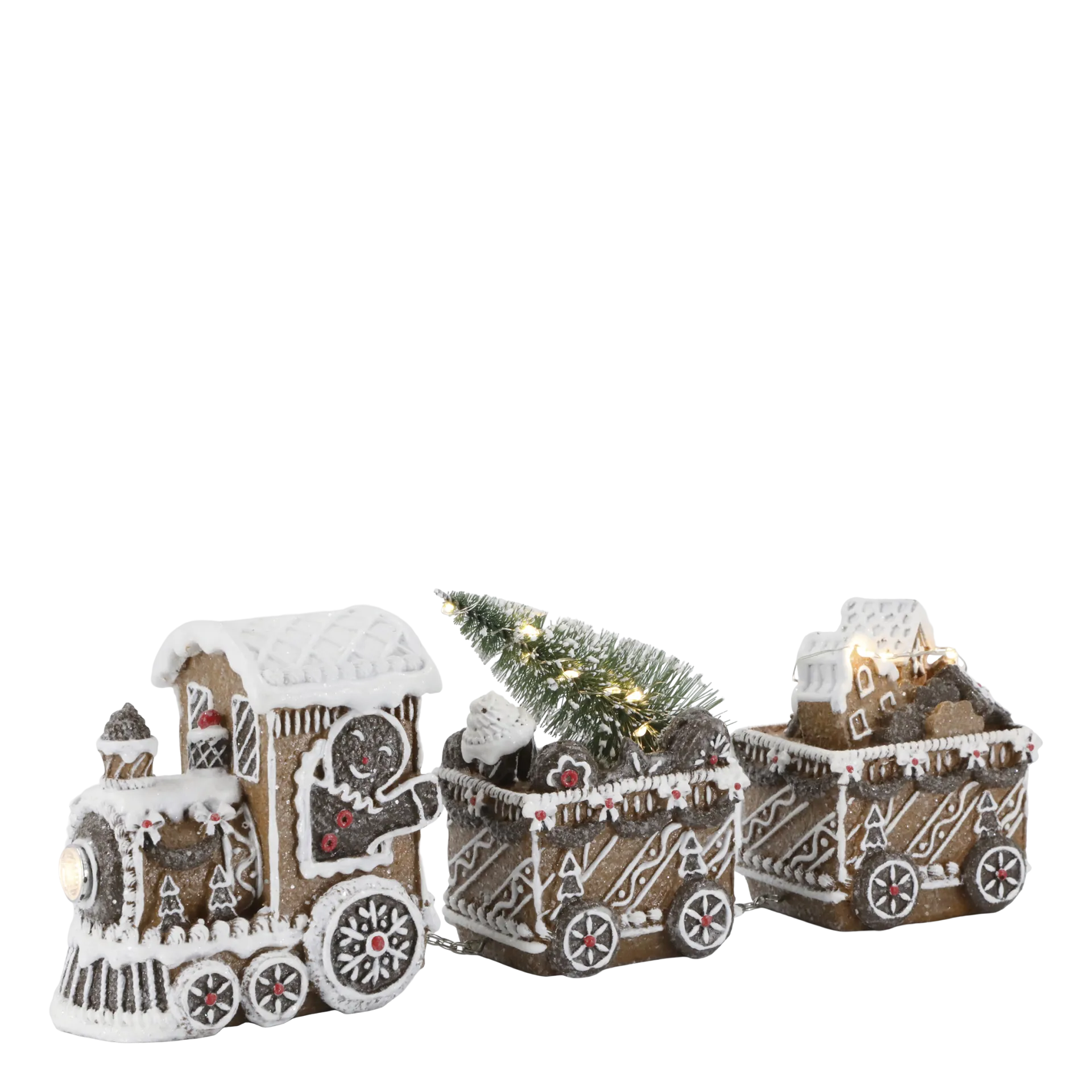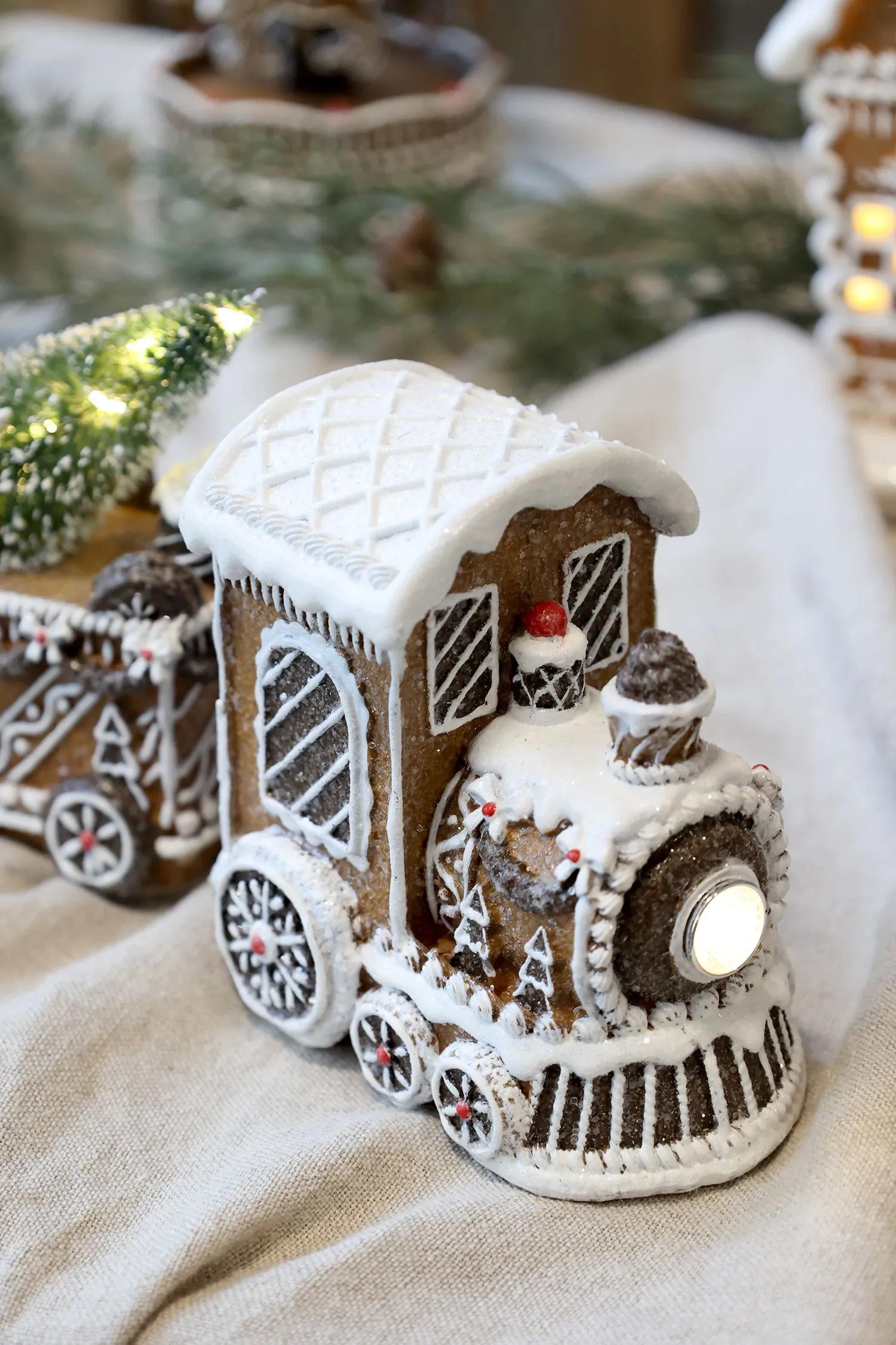 Chic Antique -piparkakkujuna LED-valoilla on hurmaava joulukoriste, joka tuo makeaa joulutunnelmaa kotiin. Piparkakkutaikinaa muistuttava juna on koristeltu valkoisilla “sokerikuorrute”-yksityiskohdilla ja pienillä jouluherkuilla. Junan vaunuissa on kuusi ja piparkakkutalo, jotka molemmat hohtavat lempeää valoa sisäänrakennettujen LED-valojen ansiosta. Tämä koriste sopii täydellisesti joulupöydän, ikkunalaudan tai takan reunuksen somistukseen. Taianomainen yksityiskohta joulukotiin!