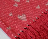 Chic Antique -puuvillapeitto säteilee lämmintä joulun tunnelmaa ja kodikkuutta. Puhtaan punainen sävy ja kauniit sydänkuviot tekevät peitosta hurmaavan lisän talven sisustukseen. Pehmeä puuvillakangas on miellyttävä ja hengittävä. Runsas hapsureuna tuo peittoon rennon ja käsintehdyn ilmeen. Tämä peitto on täydellinen sohvan päälle, sängyn jalkopäähän tai lahjaksi rakkaalle.