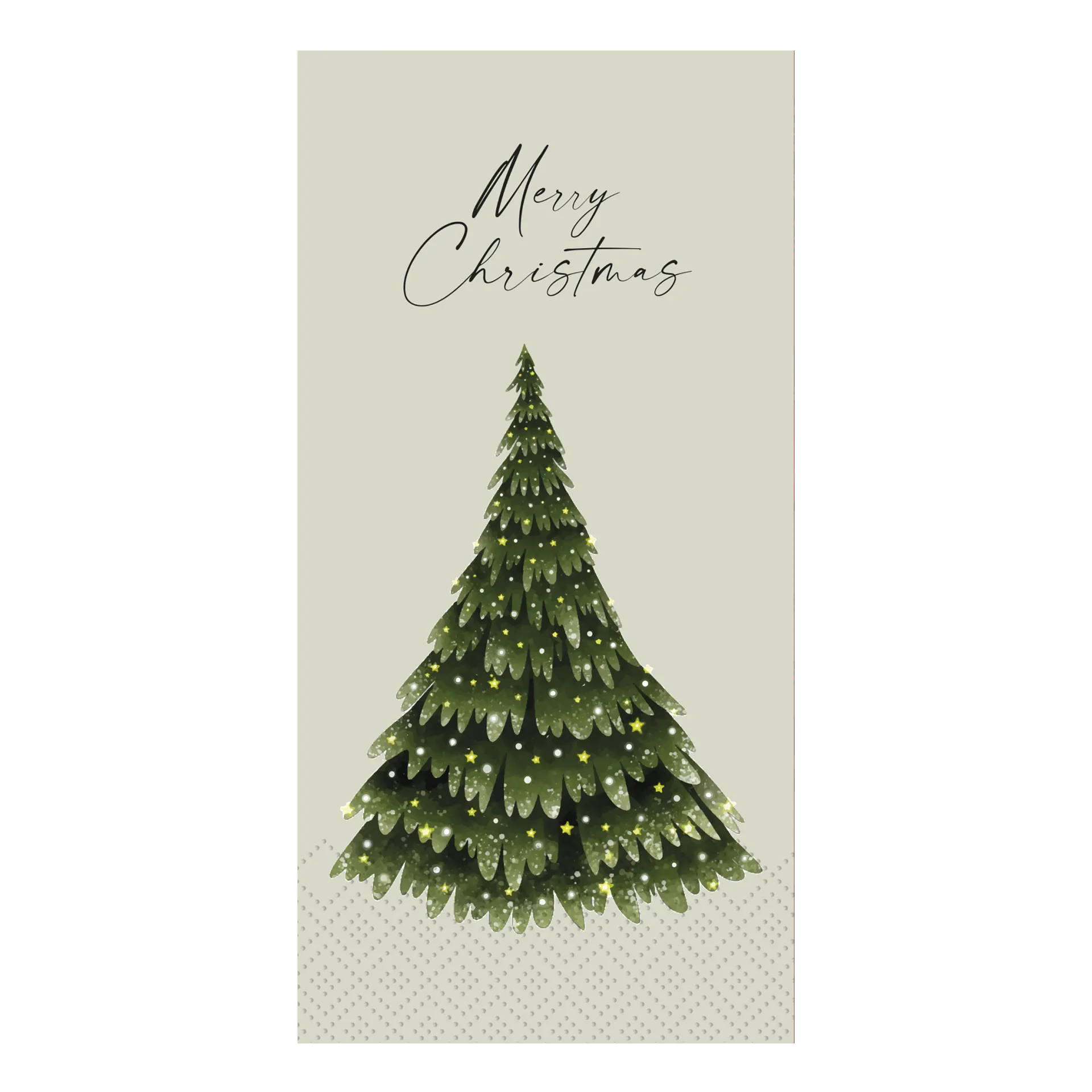 Chic Antique -paperiservetti tuo joulupöytään ripauksen klassista eleganssia ja lämmintä tunnelmaa. Kauniissa servetissä on tyylikäs joulukuusi ja teksti Merry Christmas hillityllä fontilla. Pehmeän vihertävä tausta ja luonnonläheiset sävyt tekevät siitä täydellisen valinnan joulukattaukseen. Servetti on valmistettu laadukkaasta paperista. Taitettuna servetti on kooltaan 10 x 20 cm ja avattuna 40 x 40 cm. Pakkauksessa servettejä 16 kappaletta.