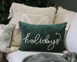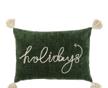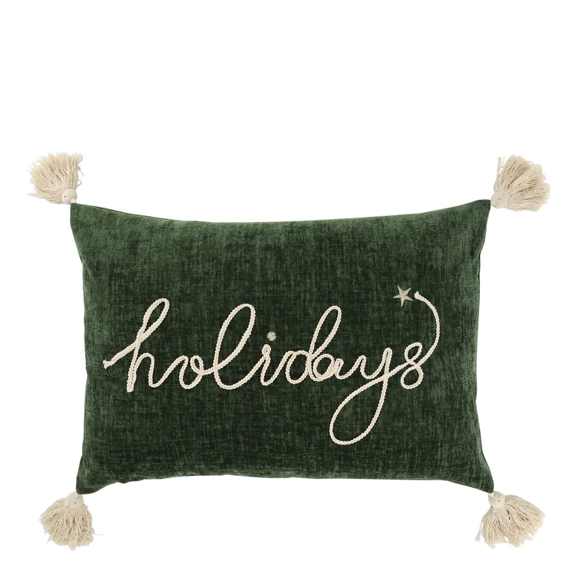 Chic Antique -tyynynpäällinen tuo juhlan tunnelman kotiin tyylikkäällä ja rennolla tavalla. Syvän vihreä samettinen pinta ja kauniisti kirjailtu “holidays”-teksti tekevät siitä täydellisen yksityiskohdan joulun aikaan. Tupsut kulmissa lisäävät pehmeyttä ja boheemia charmia. Tyynynpäällinen sopii erinomaisesti sohvalle, nojatuoliin tai makuuhuoneen sisustukseen tuomaan lämmintä ja kutsuvaa ilmettä.