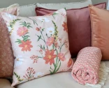 Tuo kotiisi raikasta ja iloista tunnelmaa tällä Chic Antiquen kukkakuosisella tyynynpäällisellä. Tyynynpäällisen pohjasävy on lämpimän vaalea persikkapinkki. Tyynynpäällistä koristavat eloisat oranssin, valkoisen ja vihreän sävyiset kukat, jotka tekevät tyynystä kauniin katseenvangitsijan sohvalle, sängylle tai nojatuoliin. Tyynynpäällinen sopii loistavasti yhteen liikkeestämme löytyvän saman kuosin torkkupeiton kanssa. Sen voi myös helposti yhdistää yksivärisiin samettityynynpäällisiin lämpimissä sävyissä, jotka tuovat sisustukseen pehmeyttä ja ylellisyyttä.