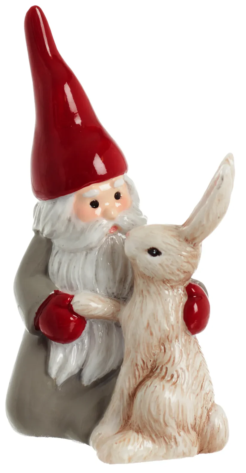 Suloinen Cult Design -tonttu tuo joulun lämpöä ja tarunhohtoista tunnelmaa kotiin. Tonttu pitelee hellästi pientä valkoista pupua, ja koristeen yksityiskohtainen viimeistely sekä pehmeät sävyt tekevät siitä hurmaavan osan joulusisustusta. Kiiltävä pinta ja perinteinen punainen tonttulakki tuovat ripauksen juhlan taikaa esimerkiksi hyllylle, pöydälle tai lahjaksi läheiselle.