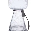 Ernstin kuplalasinen maljakko on kaunis ja ajaton. Se hurmaa yksinkertaisella muotoilullaan ja hienostuneilla yksityiskohdillaan. Kirkas lasi, jossa on pieniä ilmakuplia, heijastaa valoa kauniisti ja antaa maljakolle elävän ilmeen. Nahkanauha ja metallinen ERNST-riipus viimeistelevät ilmeen. Maljakko sopii erityisen hyvin hyasinteille, tulppaaneille tai yksittäisille oksille. Se tuo luonnon kauneuden tyylikkäästi esille.