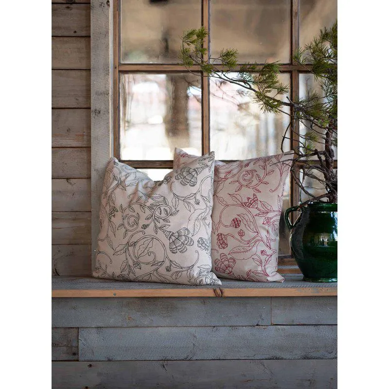 Fondaco Ellie -tyynynpäällinen punaisella kuviolla tuo sisustukseen lämpöä ja pehmeää juhlavuutta. Kauniisti piirretty kasvikuvio beigen pohjalla tekee tyynystä ajattoman ja elegantin valinnan. Se sopii erityisen hyvin talvikauden ja joulun sisustukseen. Yhdistä muiden Ellie-sarjan tekstiilien kanssa yhtenäisen ja kutsuvan ilmeen luomiseksi.