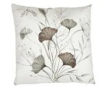 Fondacon Gisela tyynynpäällinen, jota koristaa ruskehtavat kukat ja maanläheisen vihreät lehdet. Taustavärinä valkoinen. Ihanat maanläheiset värit luovat ihanan rauhallisen tunnelman. Tyynynpäällisessä on vetoketju. Tyynynpäällinen on myös samettisen pehmeä, joten se tuo lämmintä mukavuutta vaikkapa sohvallesi. Kuvio on tyynyn molemmilla puolilla.