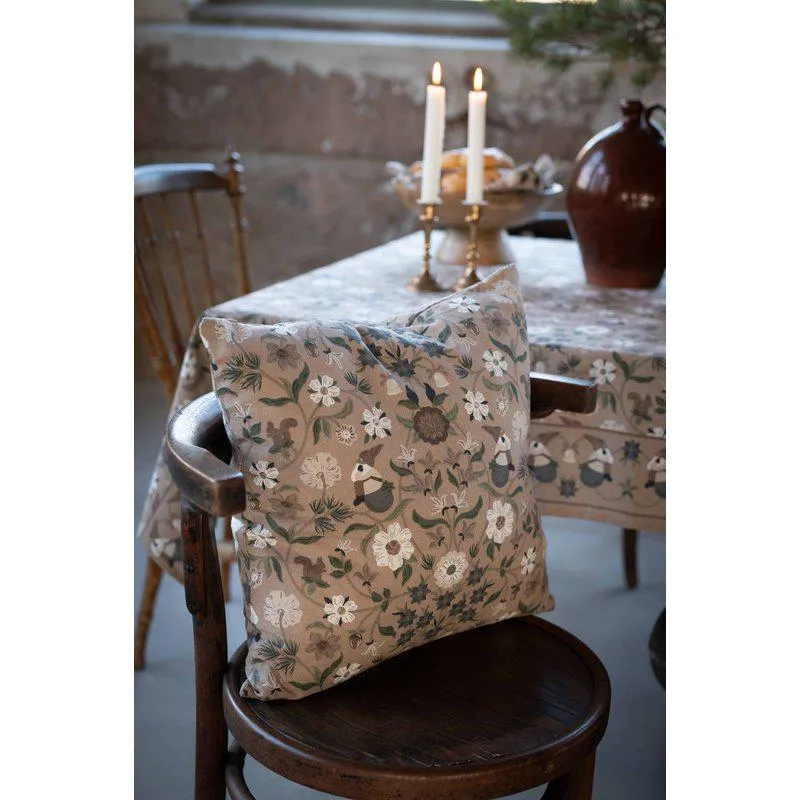 Fondaco Julefrid -pöytäliina vihreän sävyissä luo joulupöytään rauhallisen ja luonnonläheisen tunnelman. Liinan kaunis kuosi yhdistää talviset kukat ja perinteiset koristeet harmoniseksi kokonaisuudeksi. Se sopii täydellisesti yhteen puupintojen ja luonnonmateriaalien kanssa, tuoden lämpöä ja tyyliä joulun kattaukseen.