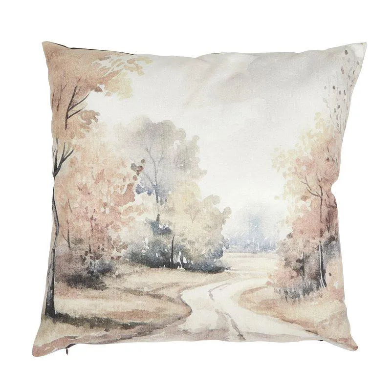 Fondaco Autumn Road -tyynynpäällinen vangitsee syksyisen maiseman pehmein vesivärimäisin sävyin. Kuva kauniista metsätiestä luo rauhallisen ja harmonisen tunnelman, joka sopii täydellisesti syksyn ja talven sisustukseen. Luonnollinen värimaailma tekee tyynynpäällisestä helposti yhdisteltävän muiden tekstiilien kanssa, tuoden kotiin lämpöä ja kaunista vuodenaikojen vaihtelun tuntua.