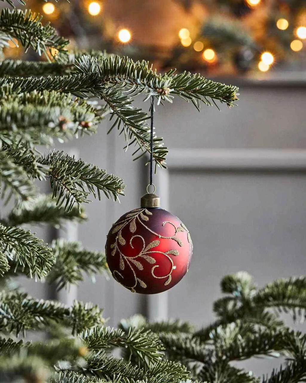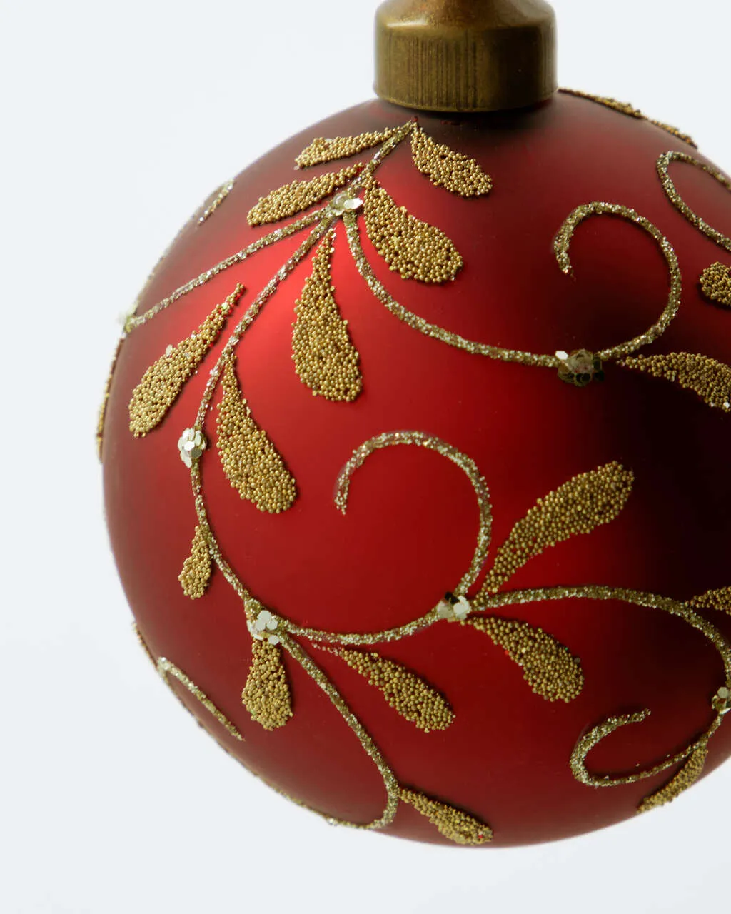House Doctor Flori -lasipallo on klassisen joulukoriste. Syvän punainen mattapinta ja upeat kultaiset, glitterillä koristellut lehtikuviot tekevät tästä pallosta näyttävän ja tyylikkään. Käsin puhallettu lasi ja viimeistelty yksityiskohtaisuus heijastavat valoa kauniisti ja luovat kuuseen lämmintä, juhlaista tunnelmaa. Flori-joulupallo sopii täydellisesti perinteiseen jouluun, mutta tuo ylellisyyttä myös moderniin sisustukseen.
