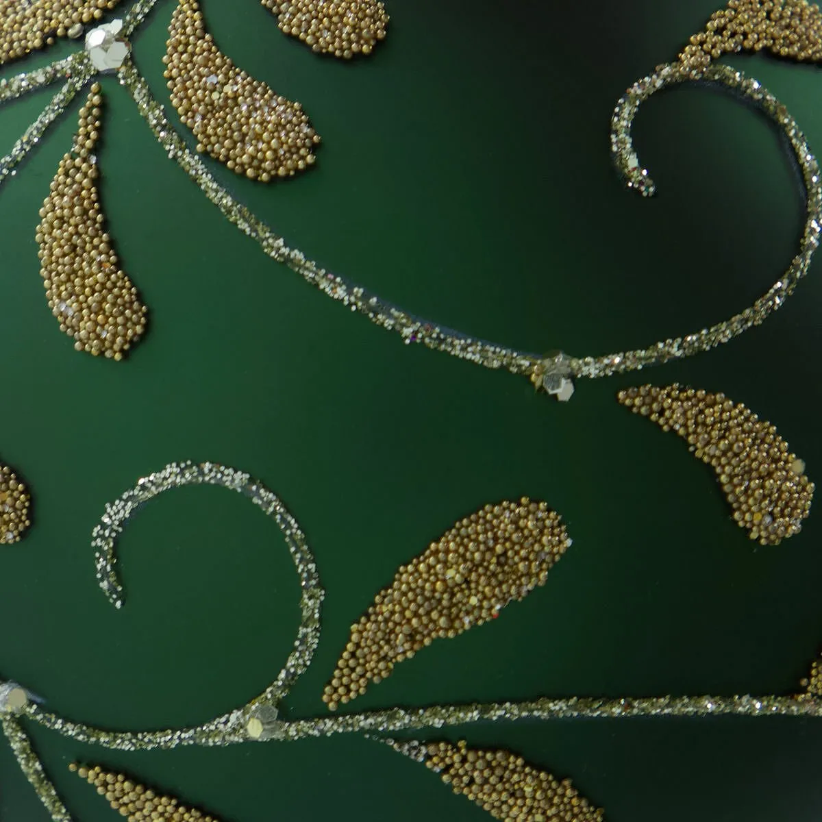 House Doctor Flori -lasipallo on upea yhdistelmä klassista eleganssia ja hienovaraista kimallusta. Syvän vihreä, mattapintainen lasi ja kultaiset glitter-koristeet muodostavat näyttävän kokonaisuuden, joka heijastaa valoa kauniisti. Jokainen pallo on käsintehty, mikä tekee siitä ainutlaatuisen. Flori-joulupallo sopii täydellisesti kuuseen, oksalle tai osaksi juhlaista asetelmaa. Luksusta ja lämpöä joulukotiin.