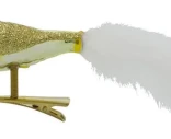 House Doctor Golden -koristelintu on elegantti lisä joulukuuseen tai talviseen kattaukseen. Käsin puhalletusta lasista valmistettu lintu on viimeistelty säihkyvällä kultaglitterillä ja pehmeällä valkoisella höyhenhännällä, joka tuo koristeeseen keveyttä ja liikettä. Kätevän klipsikiinnityksen ansiosta koristeen voi kiinnittää helposti kuusen oksille, havunoksiin, kransseihin tai lahjapakkauksiin.