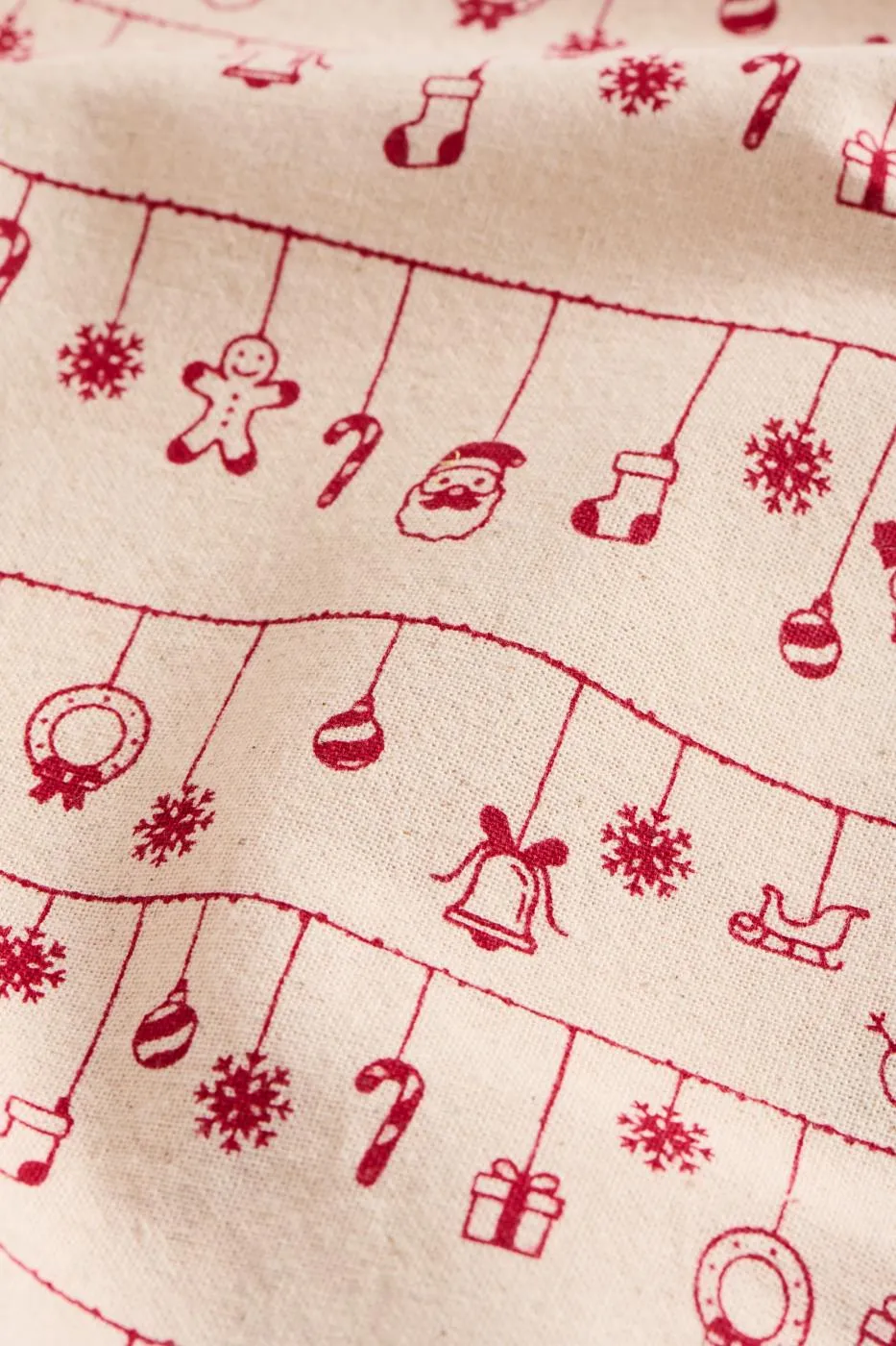 Ib Laursenin joulun tunnelmaa huokuva keittiöpyyhe tuo lämpöä ja iloa keittiöön. Pyyhe on luonnonvaaleaa puuvillakangasta, jota koristavat punaiset jouluiset kuviot: piparkakkupukki, karkkikepit, joulupukki, lumihiutaleet ja muut suloiset yksityiskohdat. Laadukas puuvillamateriaali tekee pyyhkeestä imukykyisen ja kestävän. Täydellinen lisä joulun aikaan keittiöön tai lahjaksi ystävälle.