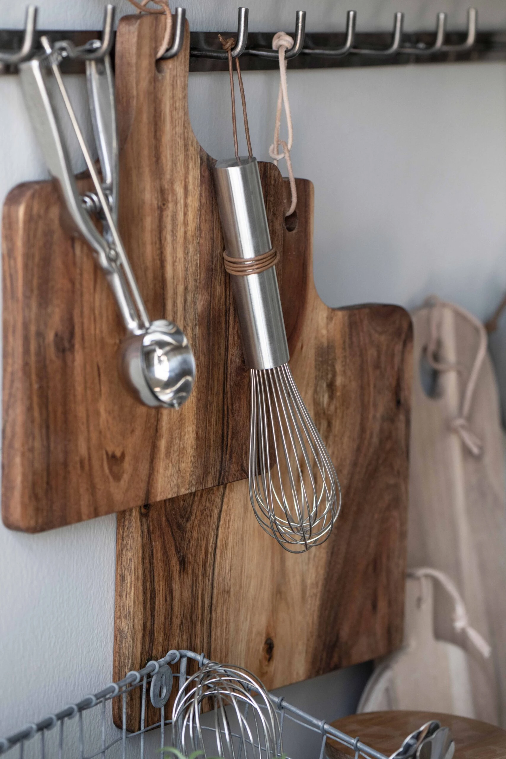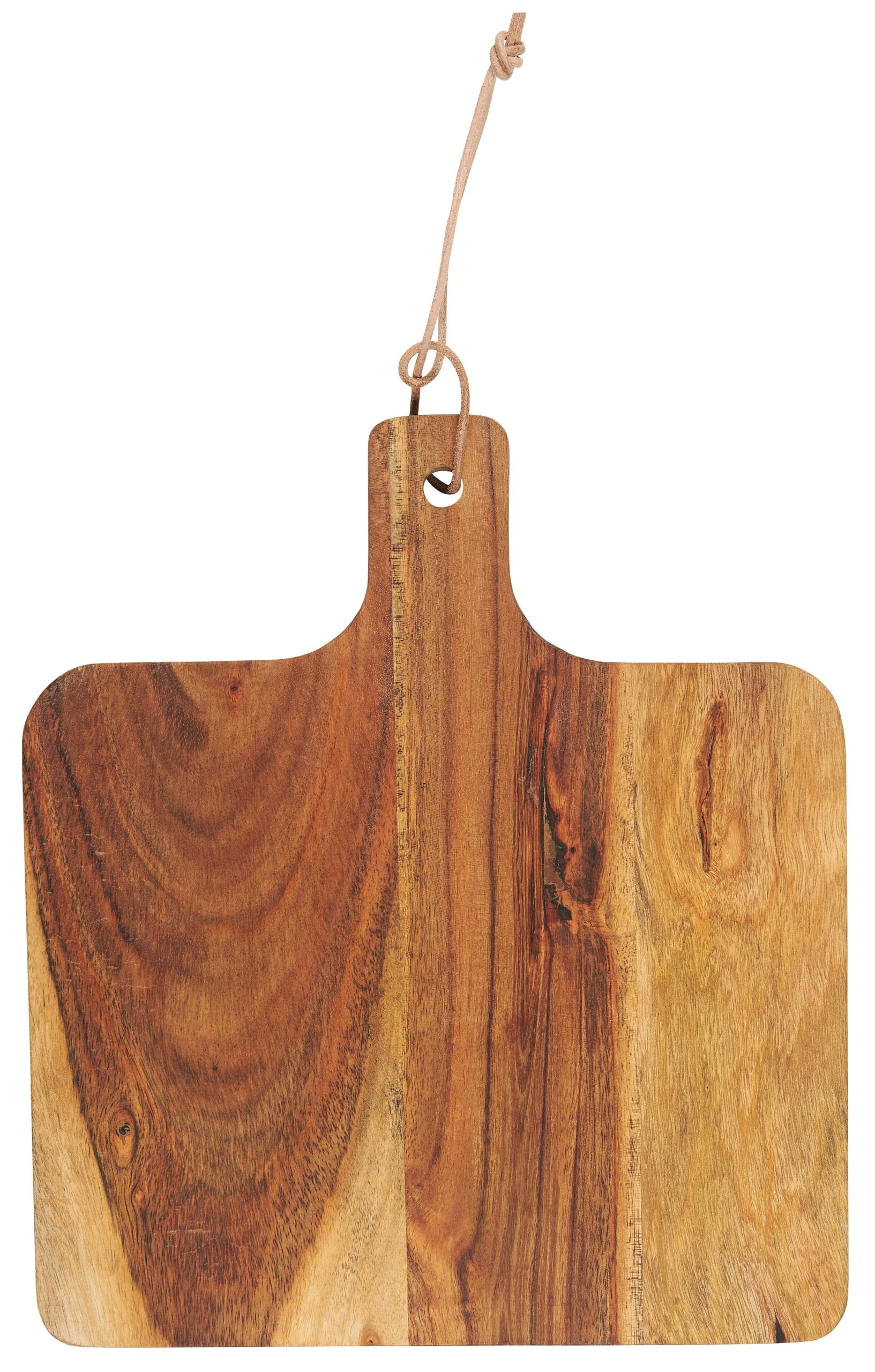 Ib Laursenin kaunis leikkuulauta on valmistettu kestävästä akaasiapuusta, joka tuo luonnollista lämpöä ja tunnelmaa keittiöön. Jokainen lauta on ainutlaatuinen puun elävän kuvioinnin ansiosta. Kätevä nahkanyöri mahdollistaa ripustamisen keittiön seinälle koristeeksi. Lauta sopii täydellisesti ruoanlaittoon, tarjoiluun tai vaikka juustolautaseksi osaksi kattausta.