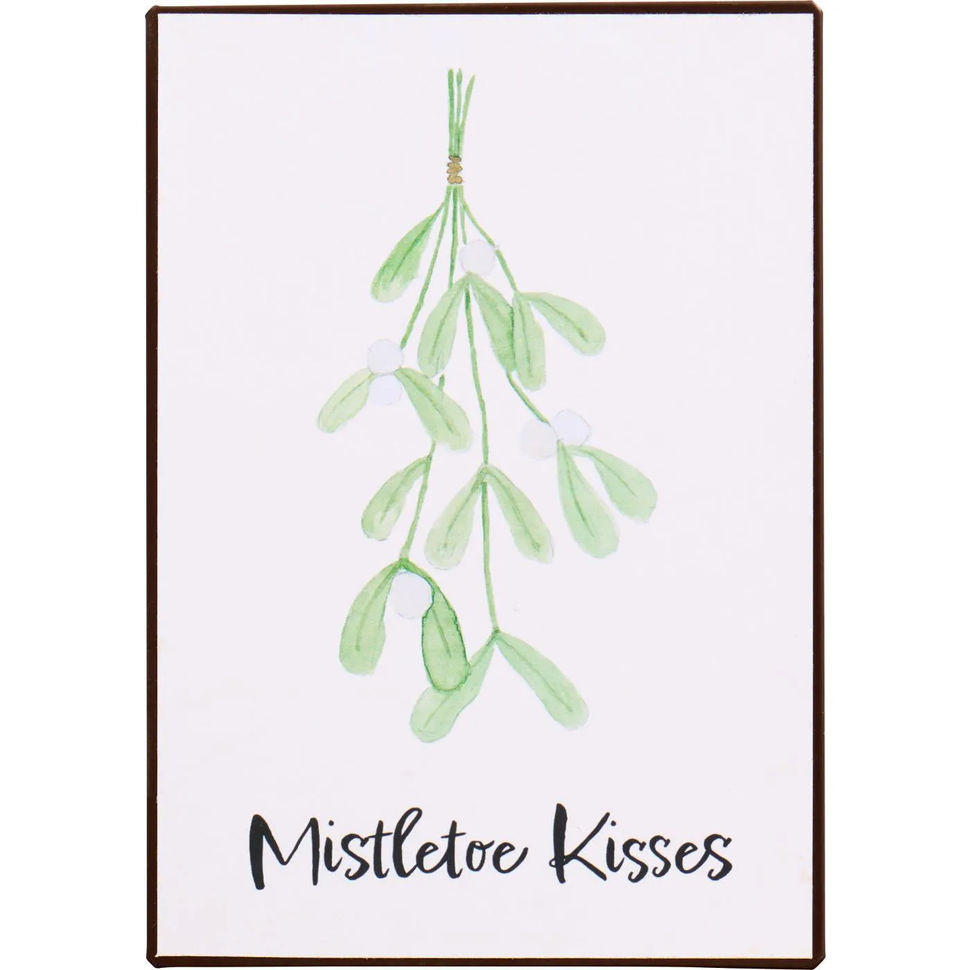 Ib Laursenin Mistletoe Kisses -metallikyltti hurmaa kevyellä, akvarellimaisella mistelinoksalla ja suloisella tekstillä. Kyltti on valmistettu kestävästä metallista. Se sopii täydellisesti osaksi joulun ajan sisustusta eteiseen, keittiöön, kuusen läheisyyteen tai vaikkapa osaksi talvista seinägalleriaa.