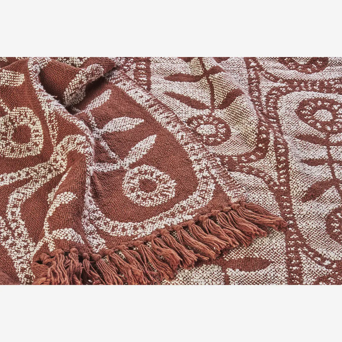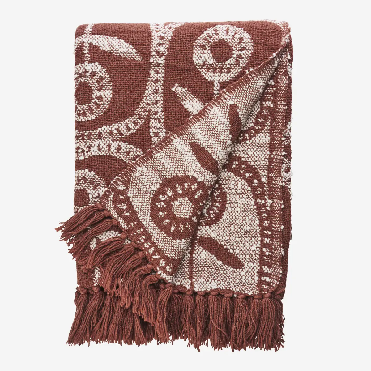 Madam Stoltzin torkkupeitto on käsinkudottu taidonnäyte, joka yhdistää lämpimän tunnelman ja kestävän valmistustavan. Peitto on valmistettu 100 % kierrätetystä puuvillasta Intiassa käsityönä. Siinä on kaunis kaksipuolinen kuviointi: toinen puoli sävyltään lämpimän ruskea, toinen vaaleampi luonnonsävyinen. Pehmeä ja miellyttävä materiaali tekee siitä täydellisen sohvalle, nojatuoliin tai sängyn päälle tuomaan tekstuuria ja kodikkuutta.