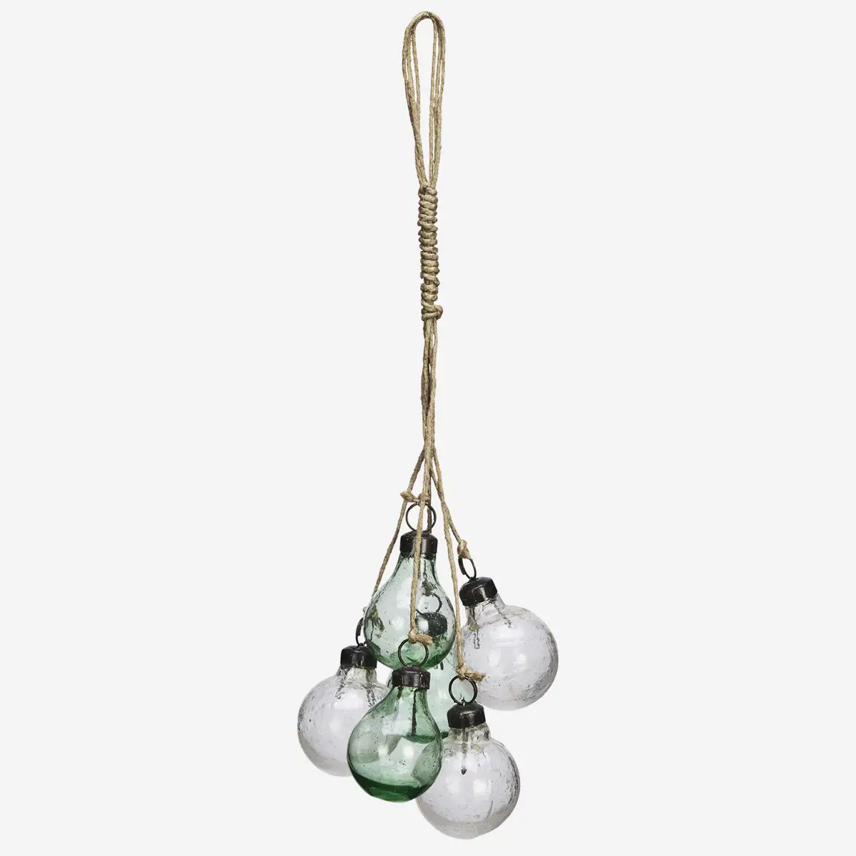 Madam Stoltz lasipallot juuttinarussa vihreä / kirkas