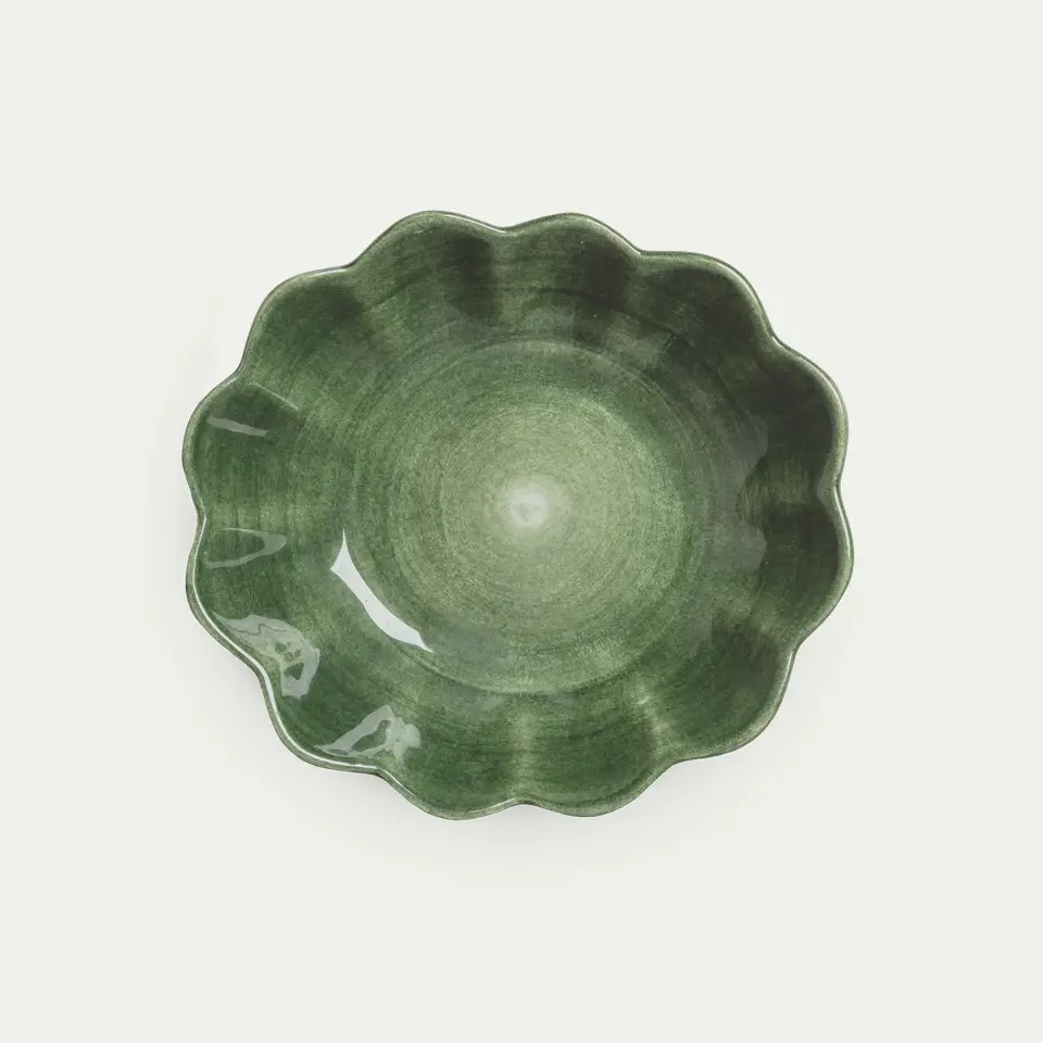 Mateus Oyster -kulho on elegantti ja monikäyttöinen astia, jonka aaltoileva reuna ja metsänvihreä forest green -sävy tuovat kattaukseen luonnollista kauneutta. Neljän desilitran kulho sopii täydellisesti esimerkiksi aamiaisen, jälkiruokien tai pienten salaattien tarjoiluun. Jokainen kulho on käsintehty Portugalissa, joten jokainen kappale on ainutlaatuinen.