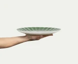 Mateus Oyster -lautanen 28 cm on näyttävä osa pöydän kattausta. Sen pehmeän aaltoileva muoto ja elävä forest green -sävy tuovat kattaukseen sekä luontoa että eleganssia. Käsintehty lautanen sopii täydellisesti pääruoille tai osaksi kerroksellista kattausta muiden Mateus-astioiden kanssa.